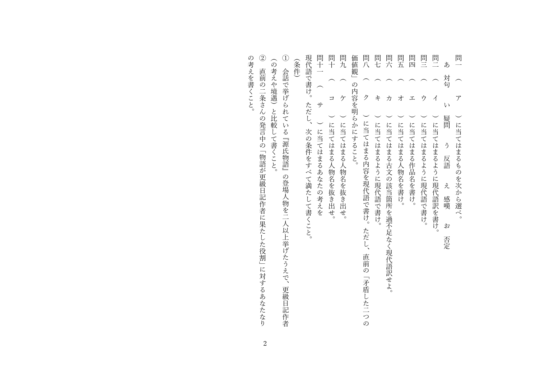 ② 直前の二条さんの発言中の「物語が更級日記作者に果たした役割」に対するあなたなりの考えを書くこと。