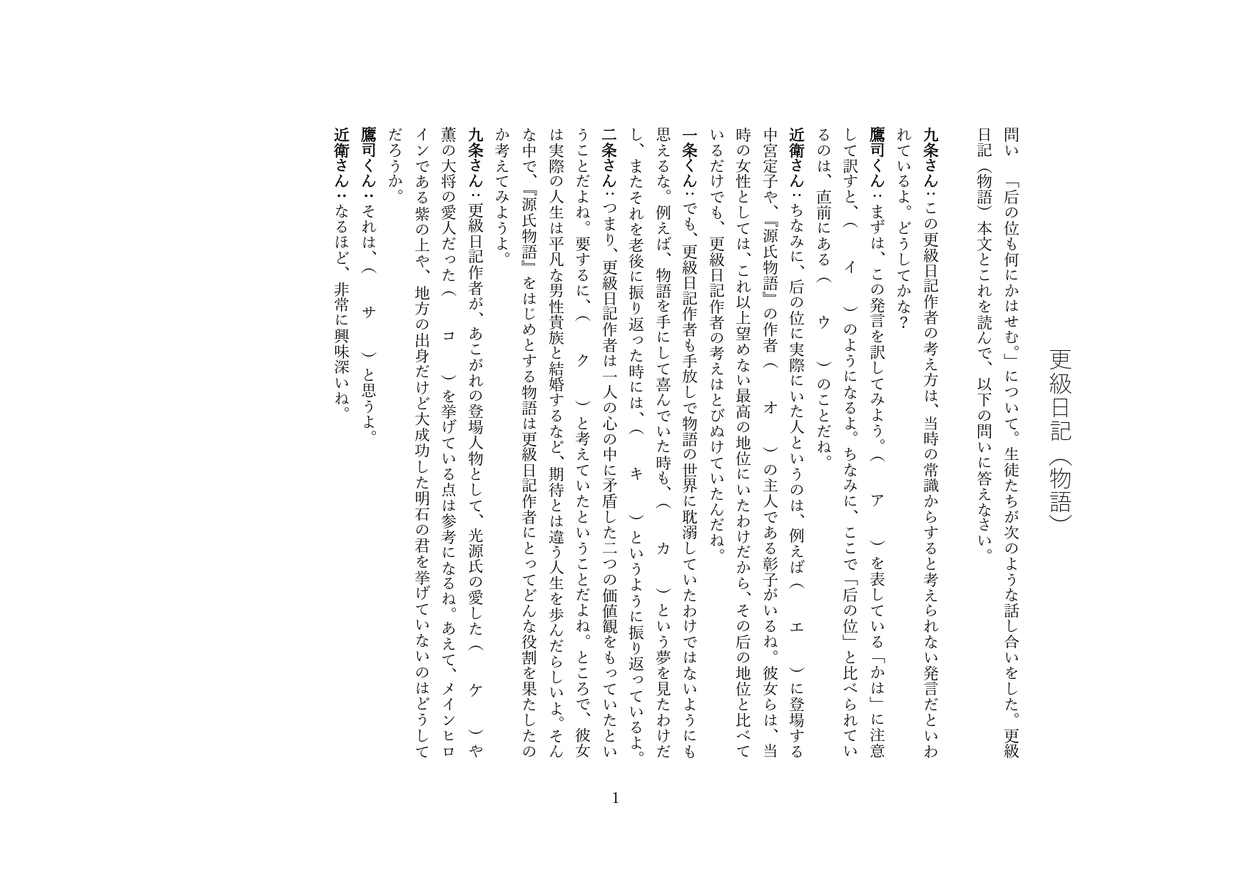 問い 「后の位も何にかはせむ。」について。生徒たちが次のような話し合いをした。更級日記(物語)本文とこれを読んで、以下の問いに答えなさい。